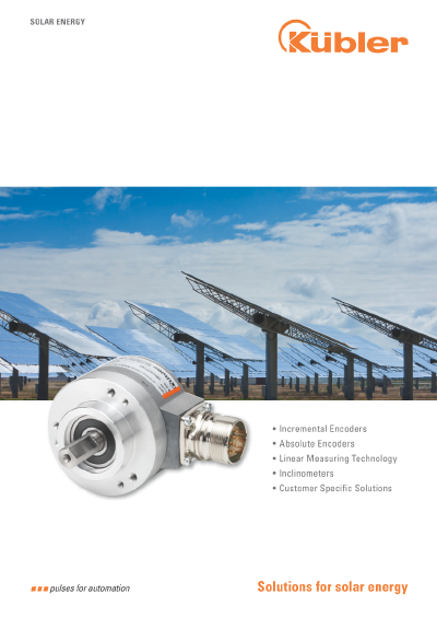 Egal ob zur Elevation- und Azimut-Regelung von Heliostaten und Dish-Stirling-Anlagen, Regelung der Winkelposition von Parabolrinnen-Systemen oder für nachgeführte Photovoltaikanlagen – Kübler bietet die passende Lösung für Ihre Anwendung. Seit Jahren vertrauen namhafte Hersteller dieser Branche in unsere Drehgeber, Neigungssensoren und linearen Messsysteme. Alle basieren auf höchster Qualität, Robustheit und zukunftsfähigen Technologien. Gerne stellen wir uns auch individuellen Herausforderungen und setzen Modifikationen sowie Sonderlösungen schnell und unkompliziert um. Denn eines ist uns besonders wichtig – Sie mit einzigartigem Mehrwert zu begeistern.