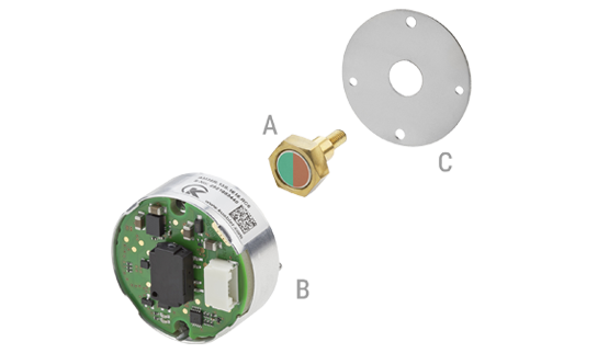 Integrierte magnetische End-Of-Shaft Drehgeber von Kübler erfassen Drehwinkel direkt am Wellenende. Die durch die Rotation eines diametralen Magneten hervorgerufene Veränderung des Magnetfeldes wird zur Positionsbestimmung genutzt. Diese Technologie ermöglicht eine platzsparende, wartungsfreie Lösung für kompakte Motorantriebe, die sich einfach integrieren lässt.