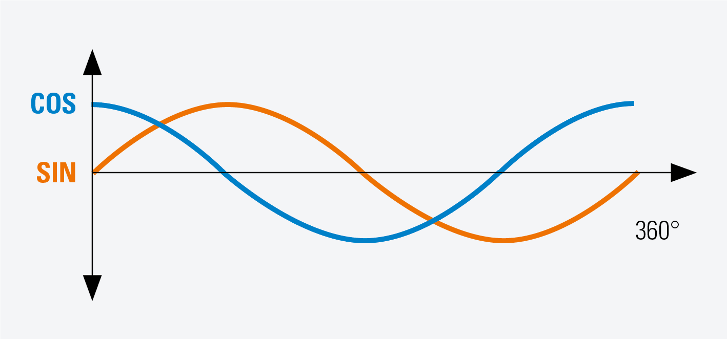 Je Umdrehung des Rotors werden Sinus- und Cosinus Signale erzeugt, die über die arctan-Funktion in exakte Positionswerte umgerechnet werden.