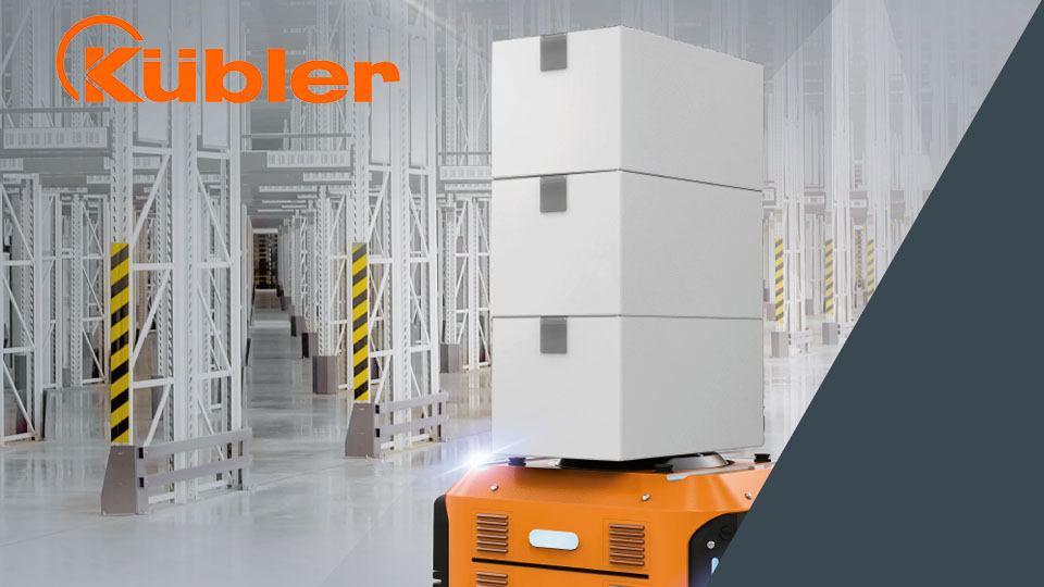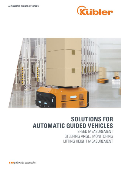 Materials handling vehicles, also called automatic guided vehicles (AGV), have been used successfully in modern logistics centers for many years – a growing trend. Goods and materials of different loads are transported to defined locations, stacked and either put into storage or removed. Logistics centers are only made more efficient if automatic guided vehicles are steered precisely. Sensors play an essential role here. Kübler encoders are successfully used here for speed detection and precise steering angle monitoring. Draw-wire encoders ensure an exact position of the load carrier and thus for a precise measuring of the lift height. Precise and reliable sensors result in an optimal travel speed and flawless storage and retrieval of goods.