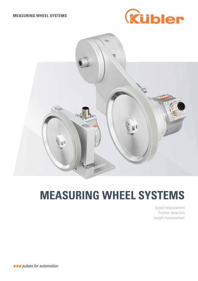 Measuring wheel systems from Kübler are the ideal solution for reliable speed measurement, position detection and length measurement in applications with linear movements. These are recorded rotationally via the measuring wheel with attached encoder directly on the surface of the material to be measured and converted into linear data. Integrated springs ensure the necessary contact force of the measuring wheel on the measuring surface for reliable measured value acquisition.