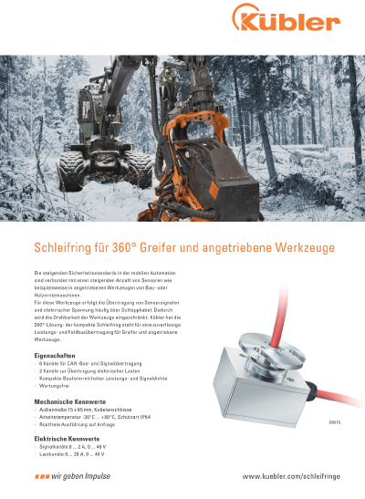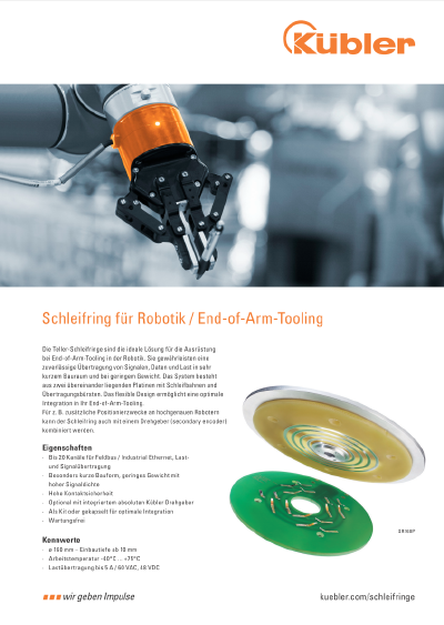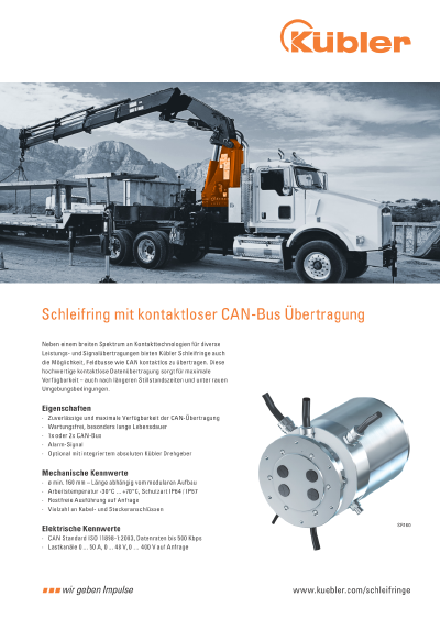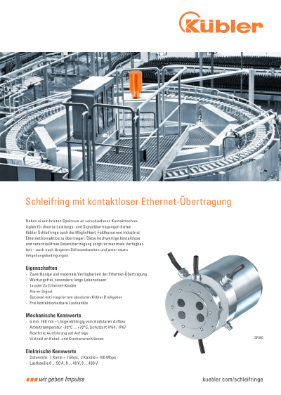 In addition to a wide range of different contact technologies for various power and signal transmissions, Kübler Slip rings also offer the option of contactless transmission of fieldbuses such as Industrial Ethernet. This high-quality contactless and wear-free data transmission ensures maximum availability - even after long downtimes and under harsh environmental conditions.