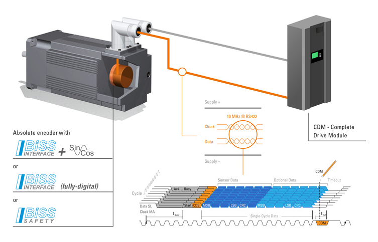 The big advantage of the BiSS interface is an open source protocol for sensor, inverter and drive, which e.g. offers high speeds (data rate up to 10 MHz) and runtime compensation for optimal operation of the drive system. It is not a licensed interface that determines the choice of components, but the requirements of the applications alone, resulting in greater flexibility and greater cost efficiency.
